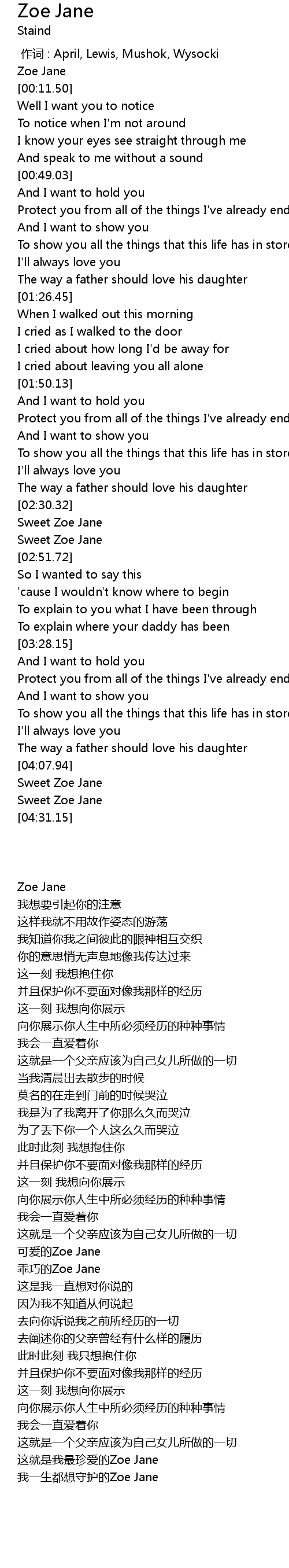 | [04:21.74] | 我一生都想守护的Zoe Jane |