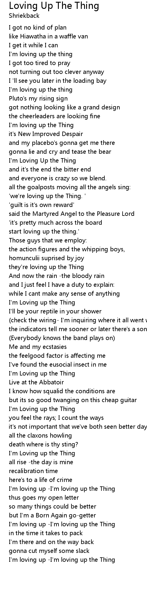 I'm Loving up the Thing |