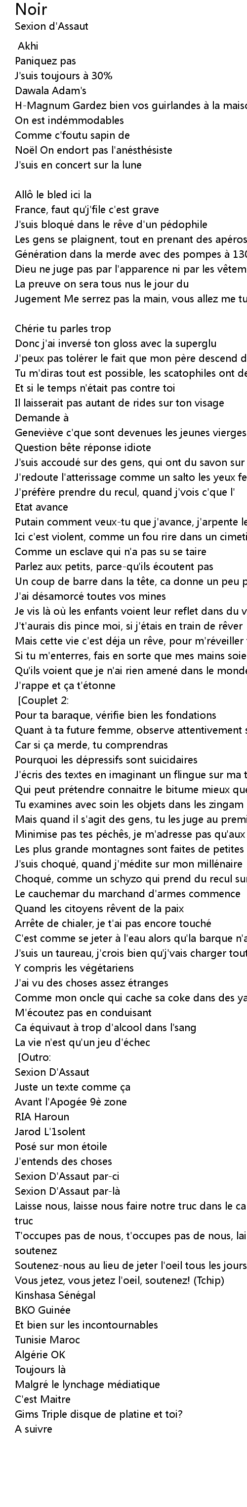 | Et à la fin le roi et le pion vont dans la même boite [Refrain] [Outro:] | |