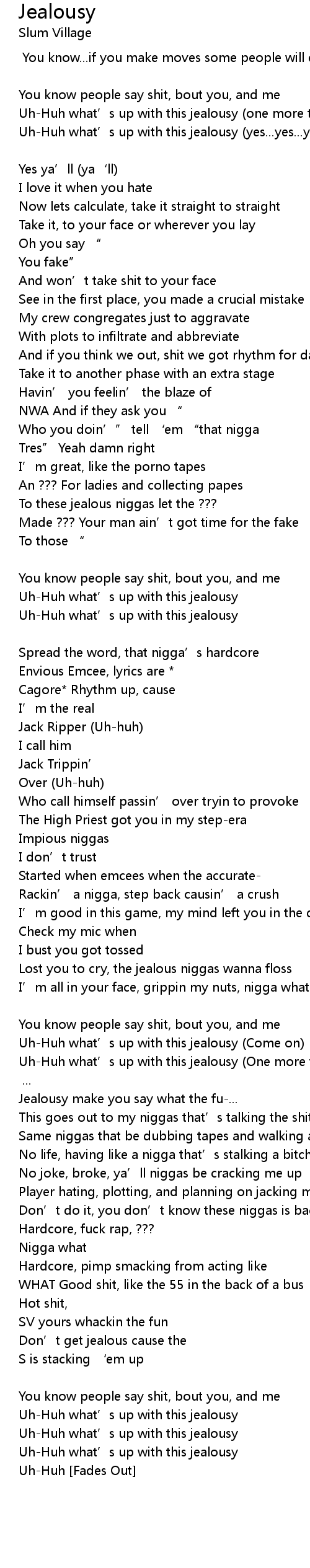 | Say what' s what' s up with this jealousy Chorus | |