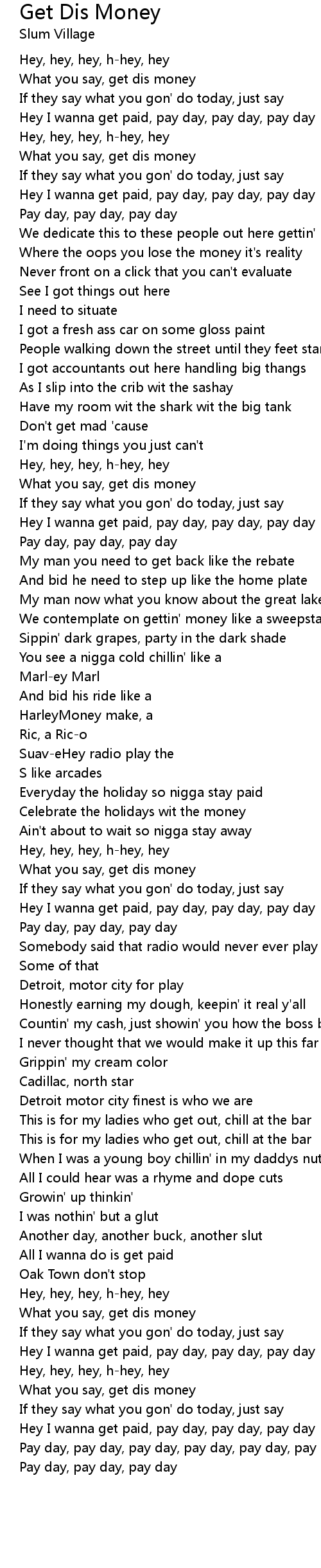 Hey I wanna get paid, pay day, pay day, pay day |
