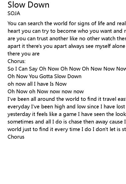 Oh Now You Gotta Slow Down |
