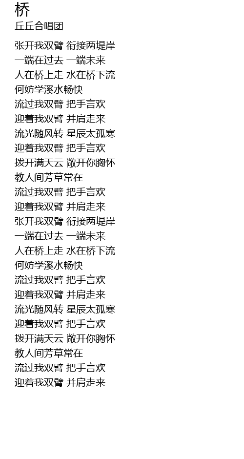 | [00:23.100] | 人在桥上走 水在桥下流 |