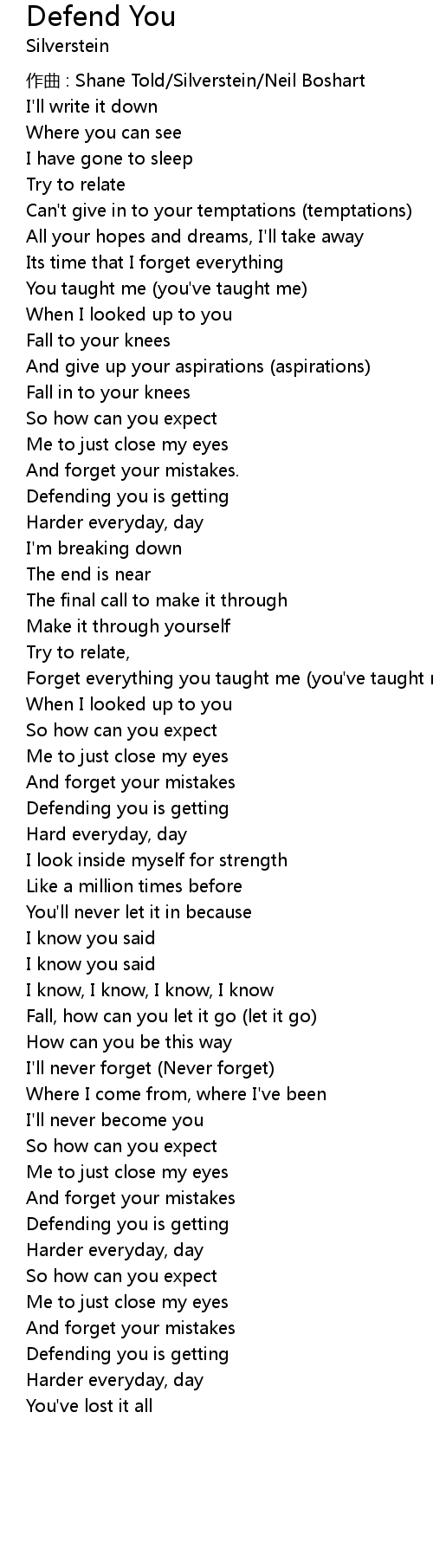 | 作曲 : Shane Told/Silverstein/Neil Boshart | |