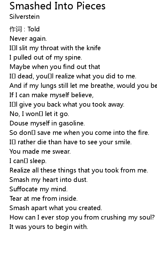 | 歌曲 | Smashed Into Pieces |