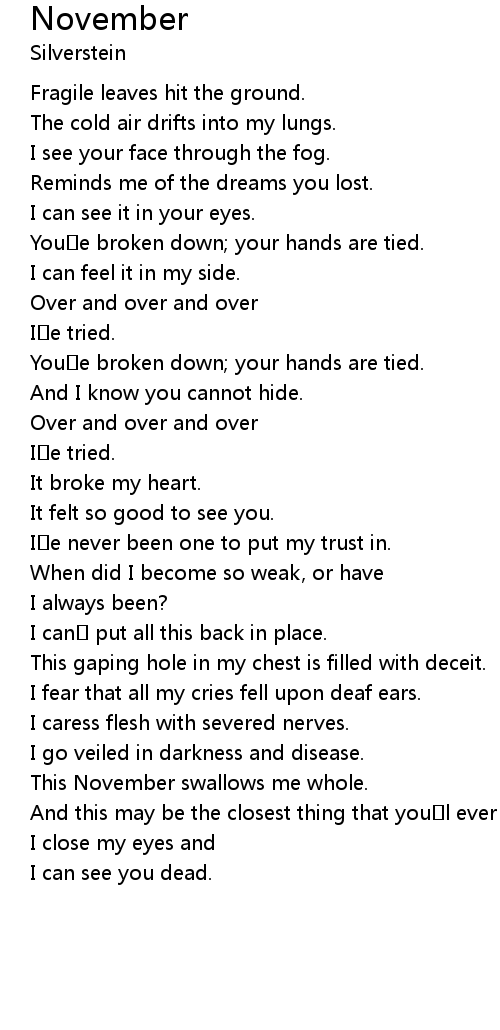 | This November swallows me whole. | |