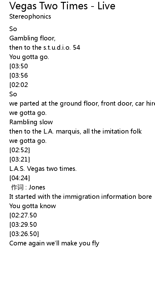 | [03:40.50][02:27.50][01:40] | Now we're leaving L.A.S. Vegas two times |