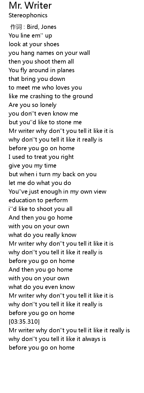 | [03:10.50] | Mr writer why don''t you tell it like it is |