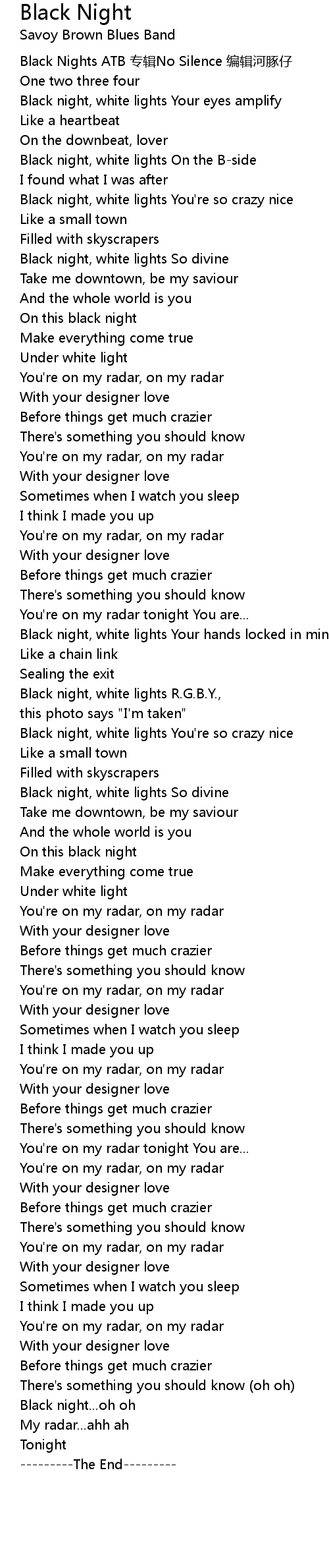 | [01:03.50] | Black night, white lights You' re so crazy nice |