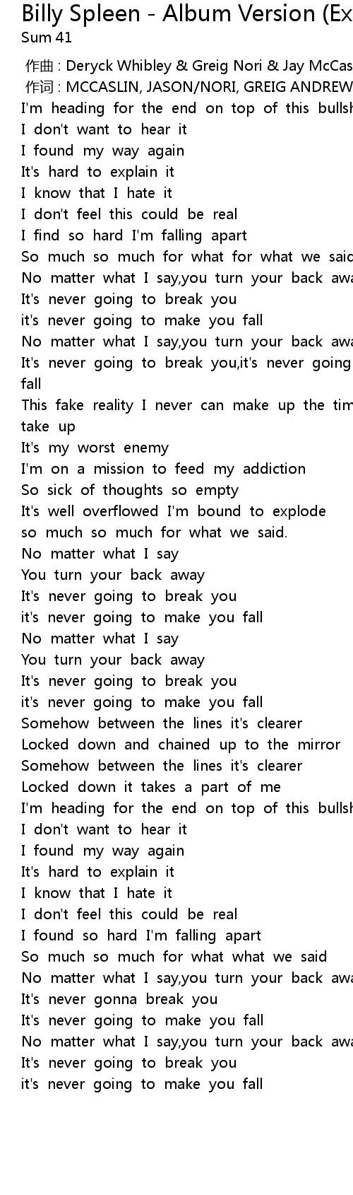 | [00:00.00] | 作曲 : Deryck Whibley & Greig Nori & Jay McCaslin |