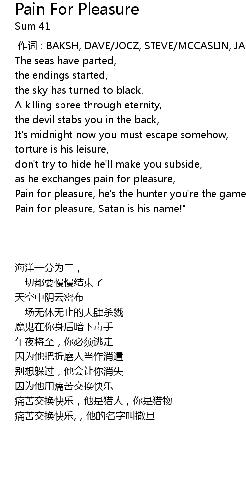 | 歌曲 | Pain For Pleasure |