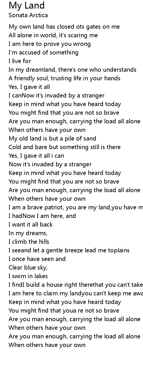I am a brave patriot, you are my land,you have my soul, you have all |