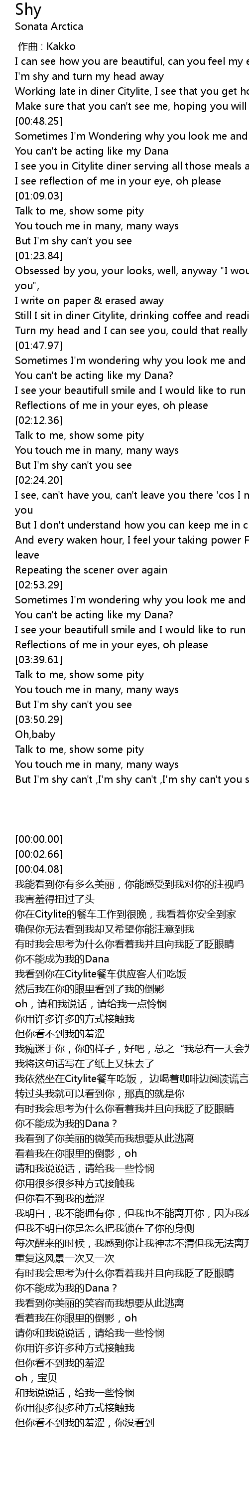 | [04:00.26] | But I'm shy can't ,I'm shy can't ,I'm shy can't you see |