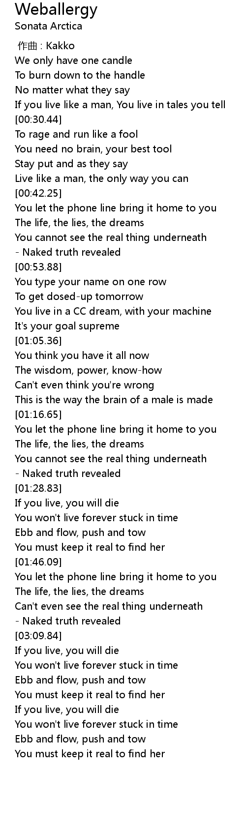 | [03:02.34] | The life, the lies, the dreams |