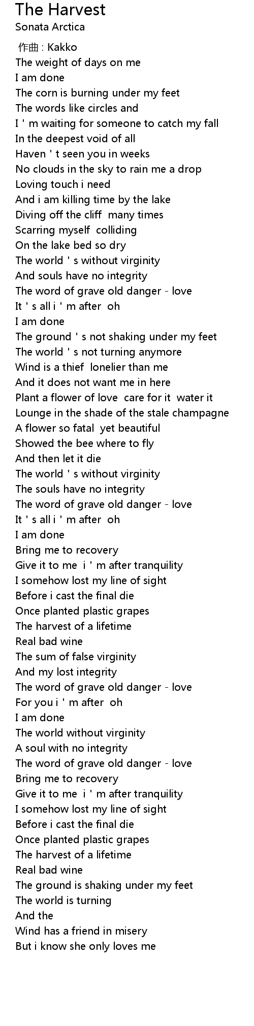 | 歌曲 | The Harvest |