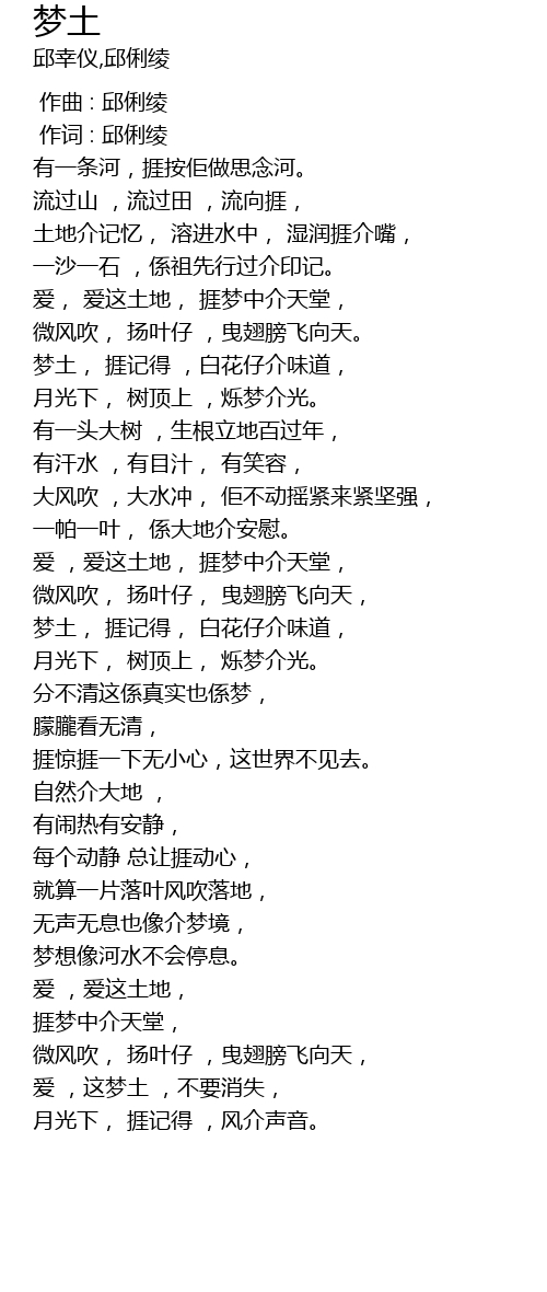 | [01:02.45] | 梦土, 捱记得 ,白花仔介味道, |