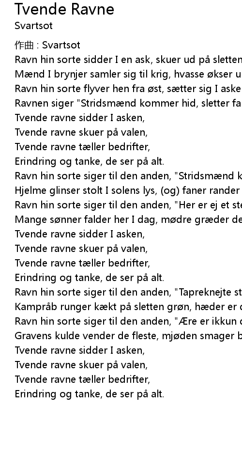 | Ravn hin sorte flyver hen fra st, s tter sig I asken gr. | |
