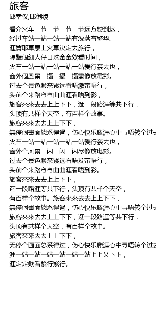 | 旅客來來去去上上下下,迓一段路涯等共下行, | |