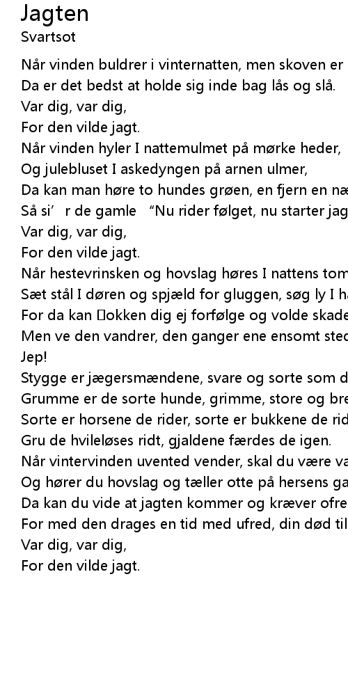 | Da kan du vide at jagten kommer og kr ver ofre, | |
