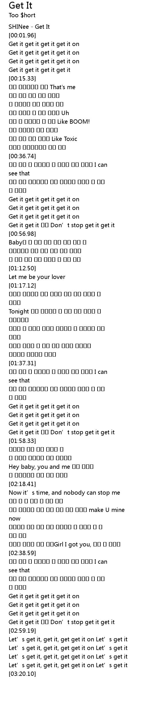 | [00:01.25] | SHINee - Get It |
