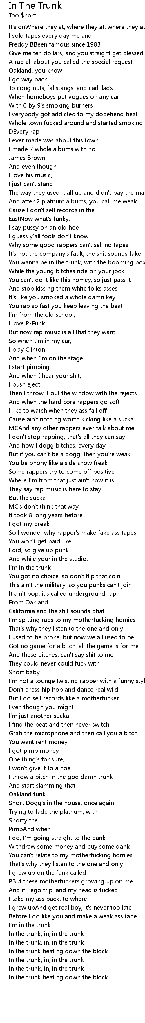 You wanna be in the trunk, with the booming box |