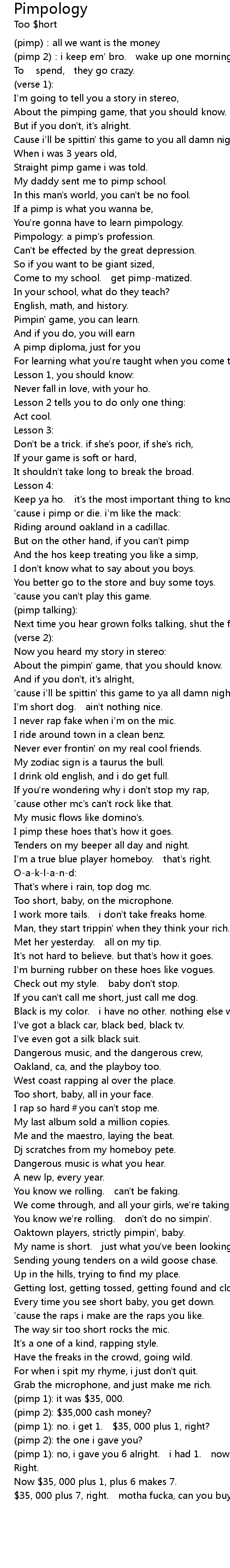 | About the pimpin' game, that you should know. | |