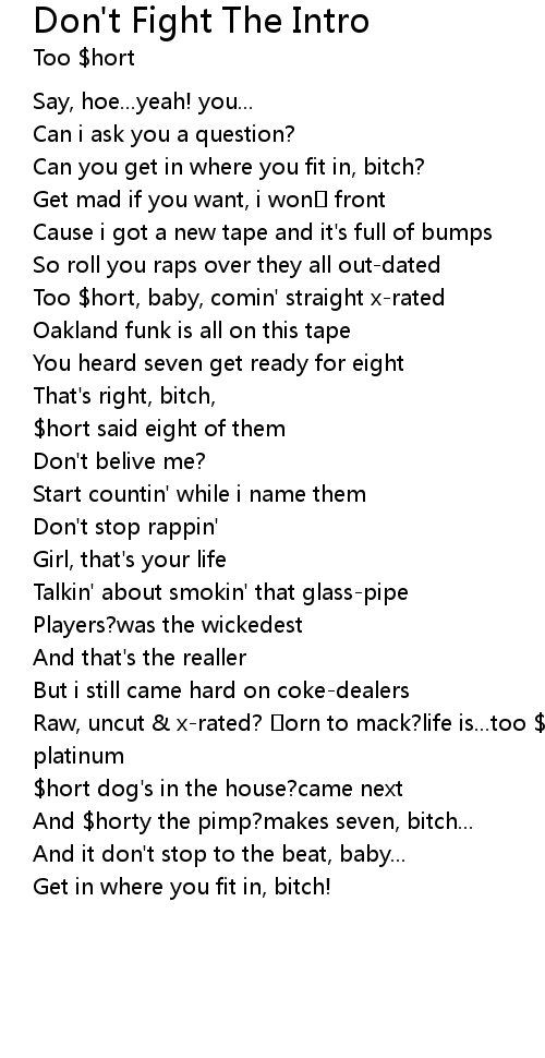 | Too hort, baby, comin' straight xrated | |