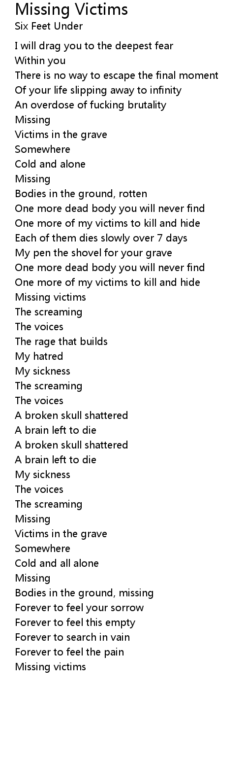 Bodies in the ground, missing |