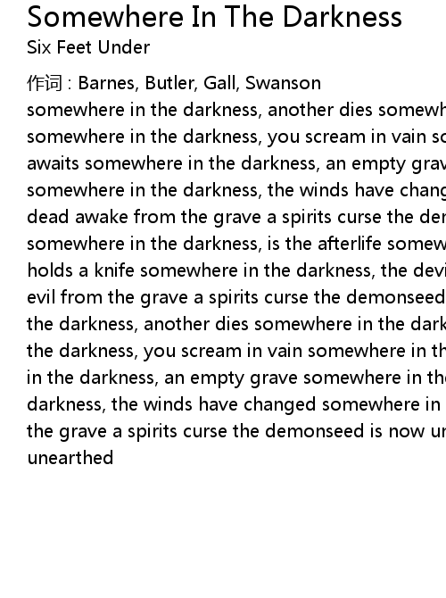 | 歌曲 | Somewhere In The Darkness |