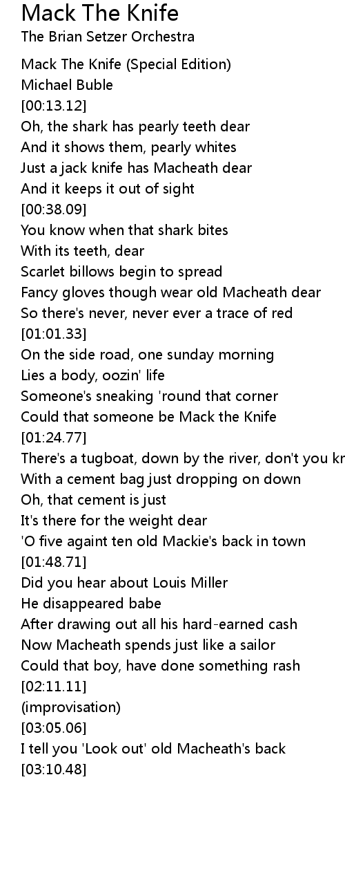 Mack The Knife 歌词