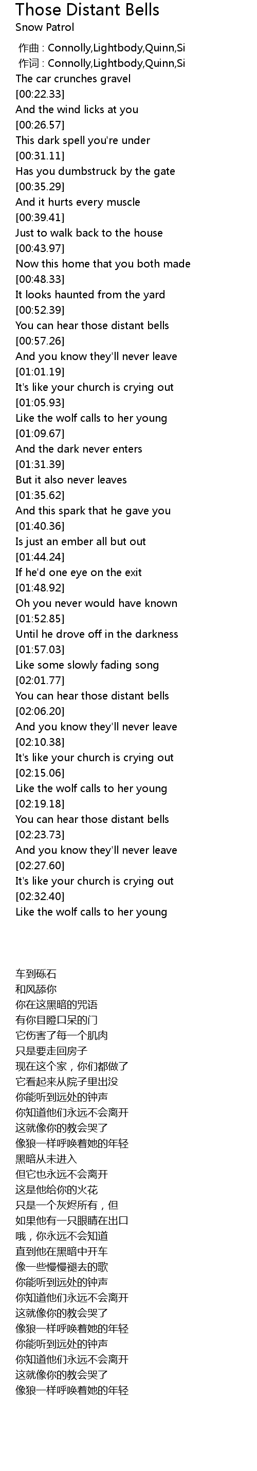 | [02:03.08] | 你能听到远处的钟声 |