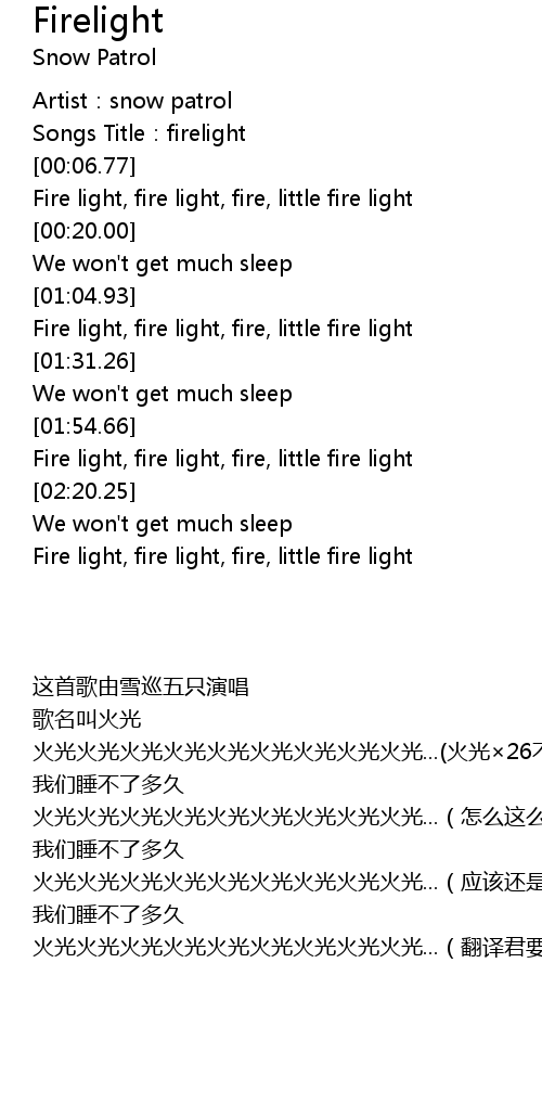| [00:03.02] | Songs Title: firelight |