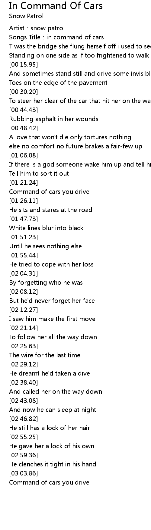 | [00:19.37] | And sometimes stand still and drive some invisible car |