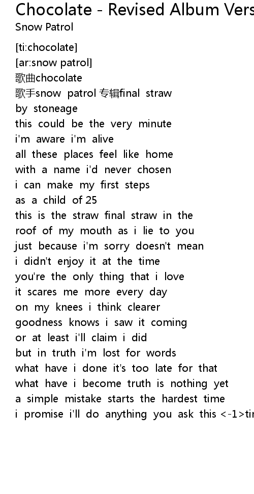 | [00:09.36] | 歌手snow patrol 专辑final straw |