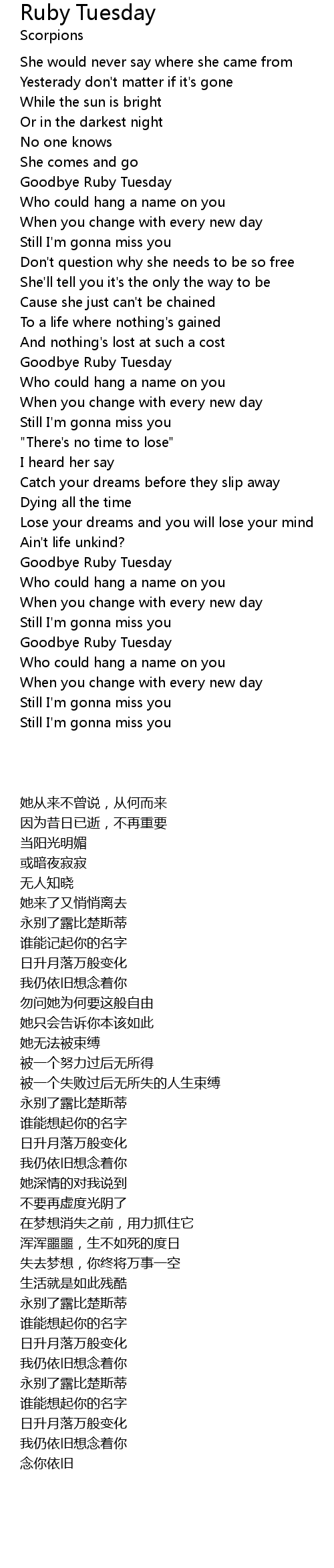 Goodbye Ruby Tuesday |
