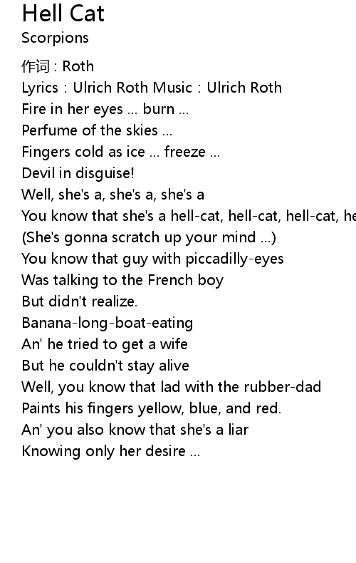 | You know that she's a hell-cat, hell-cat, hell-cat, hell-cat | |