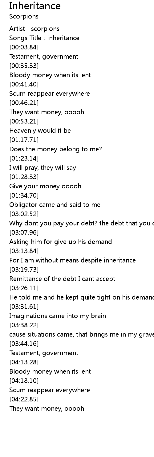 | [00:02.15] | Songs Title:inheritance |
