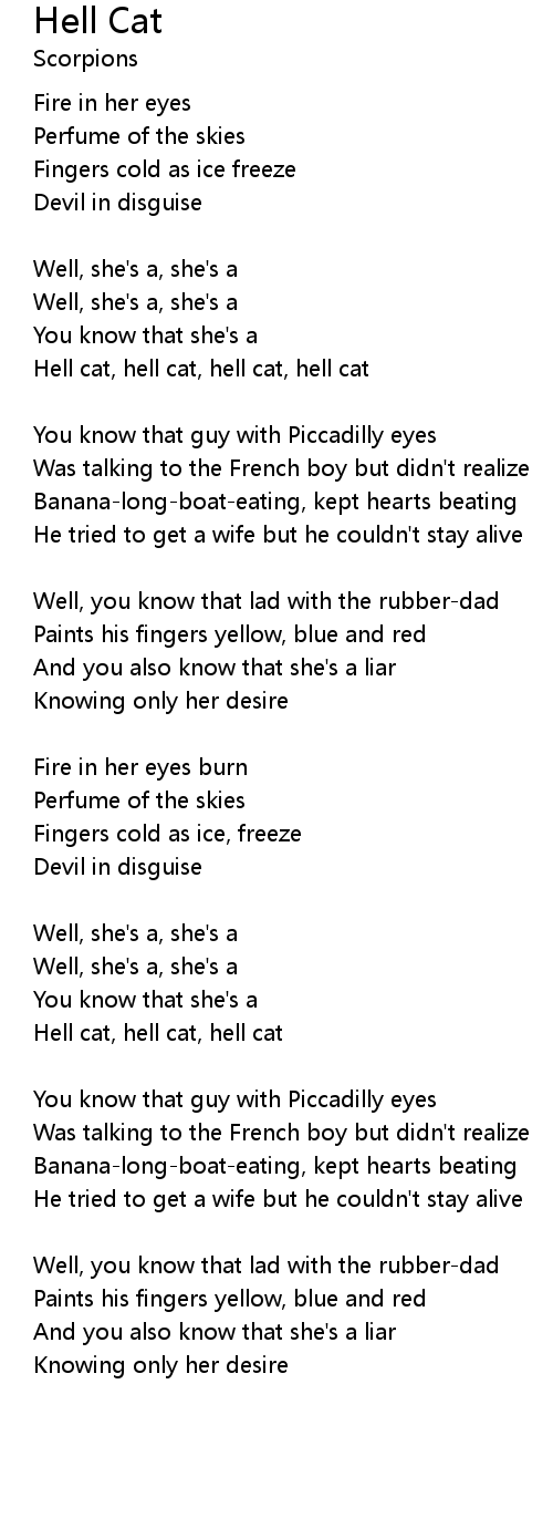 Hell cat, hell cat, hell cat, hell cat |