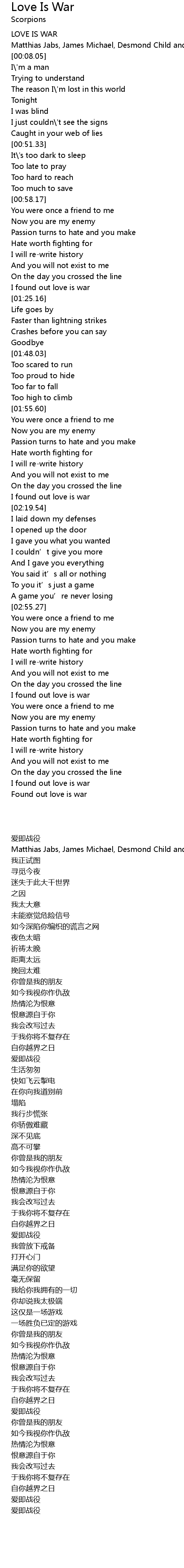 | [00:06.95] | Matthias Jabs, James Michael, Desmond Child and Marti Frederiksen |