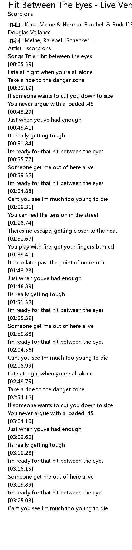 | 歌曲 | Hit Between The Eyes - Live Version |
