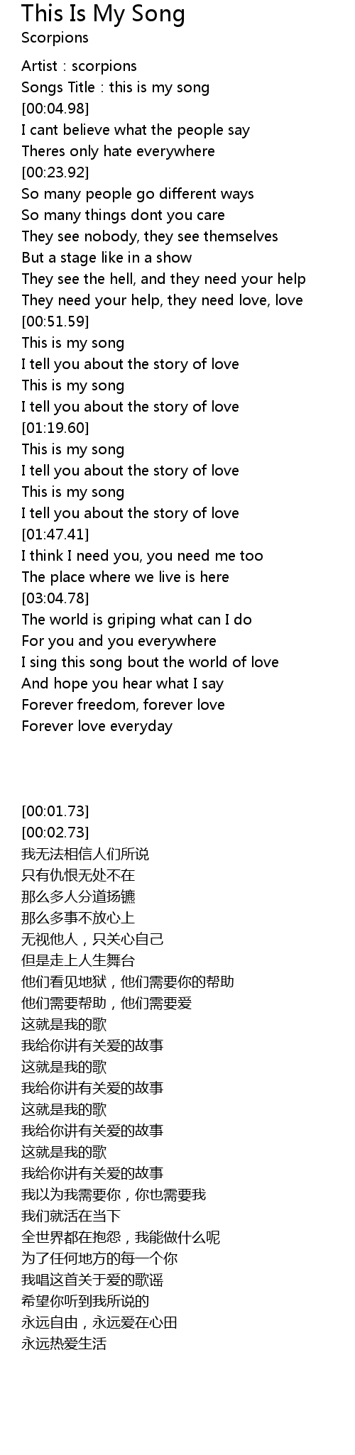 | [00:02.73] | Songs Title:this is my song |
