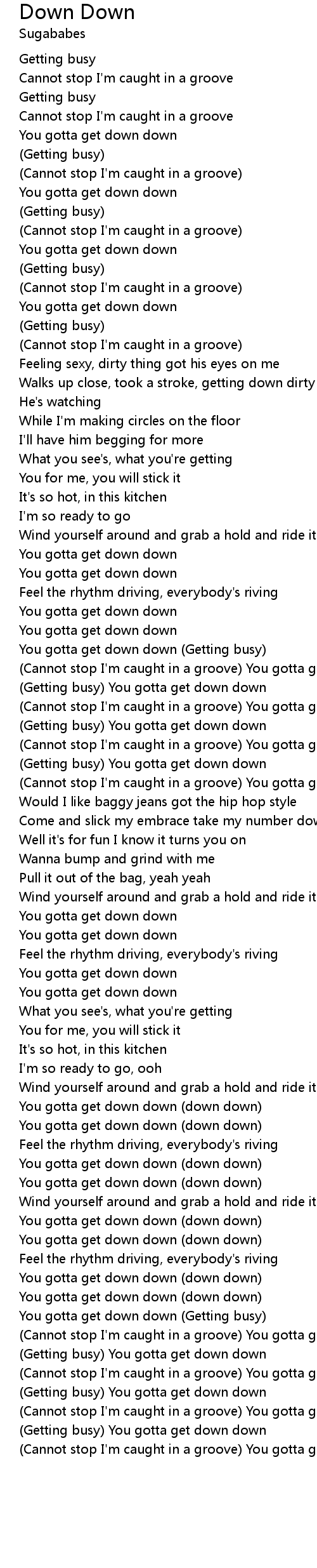 (Getting busy) You gotta get down down |