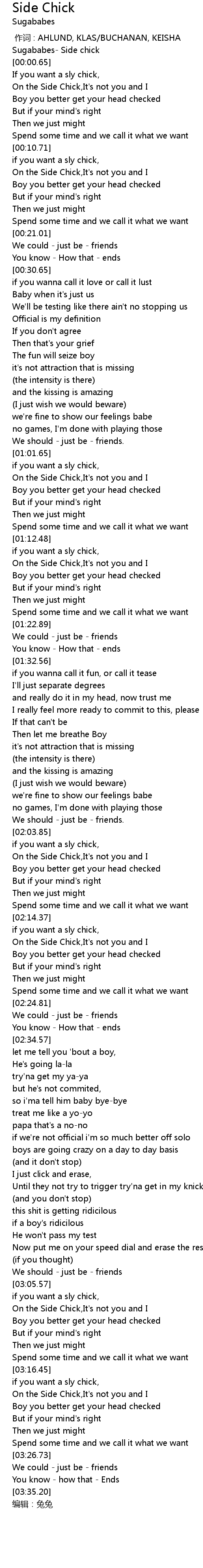| [02:16.20] | On the Side Chick,It's not you and I |