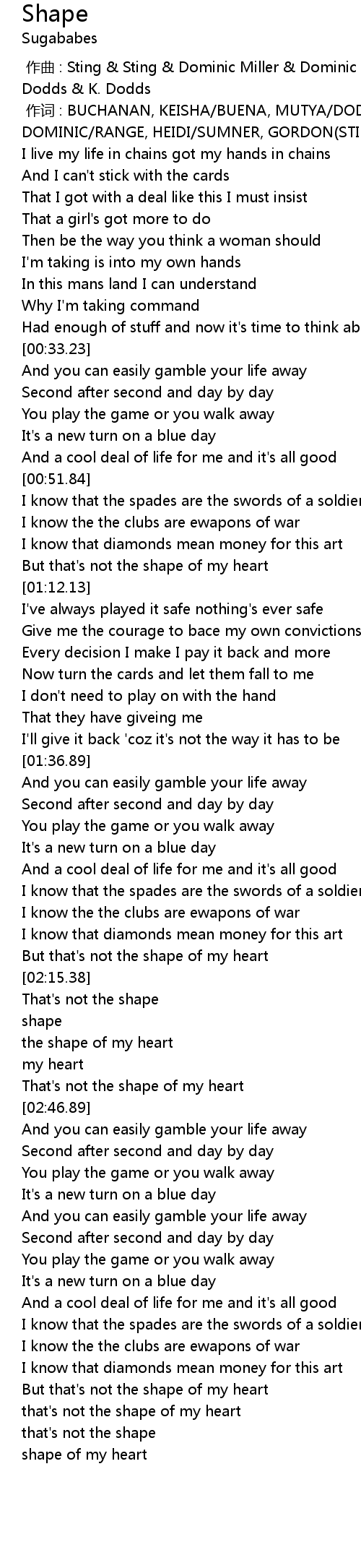 | [00:00.00] | 作曲 : Sting & Sting & Dominic Miller & Dominic Miller & Craig Dodds & K. Dodds |