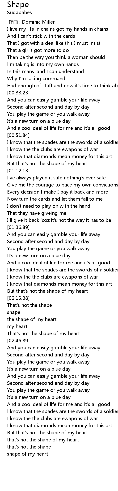 | [00:52.36] | I know that the spades are the swords of a soldier |