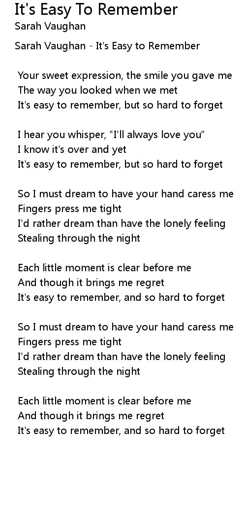 It's easy to remember, but so hard to forget |