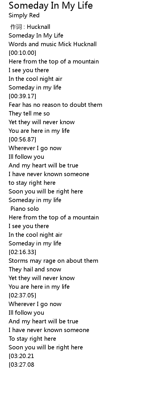| [00:00.00] | Someday In My Life |