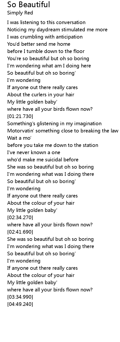 | [00:39.910] | You' re so beautiful but oh so boring |