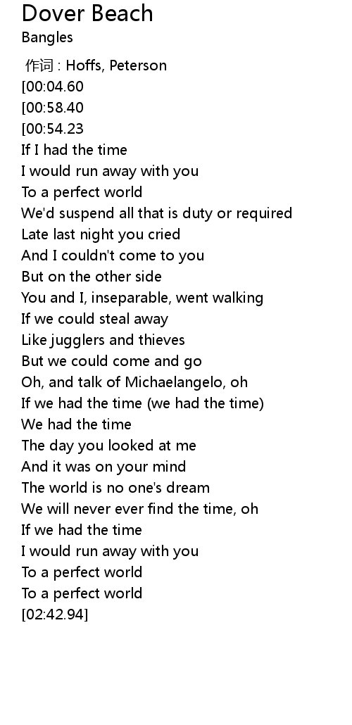 | [00:01.95][00:58.40] | The Bangles Dover Beach |