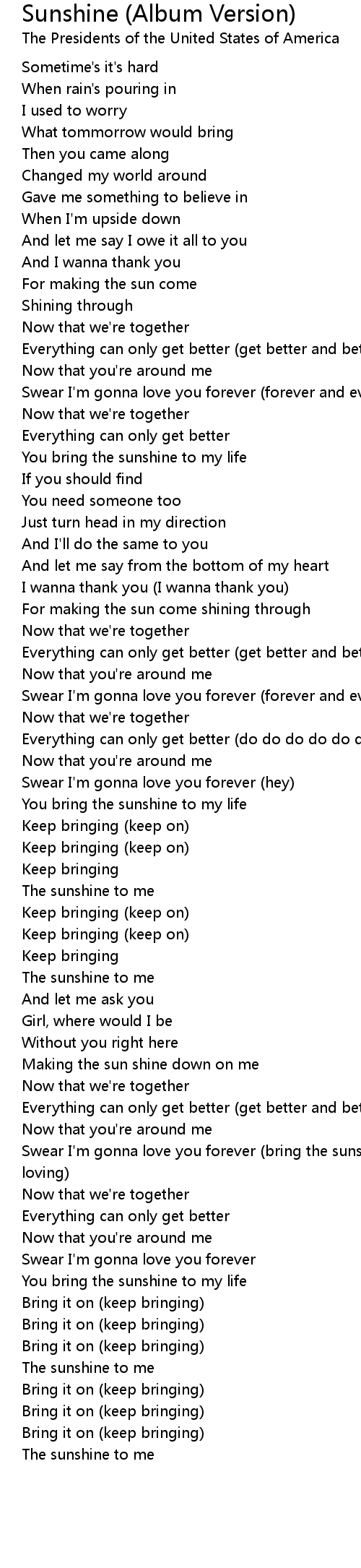 Sunshine (Album Version) 歌词